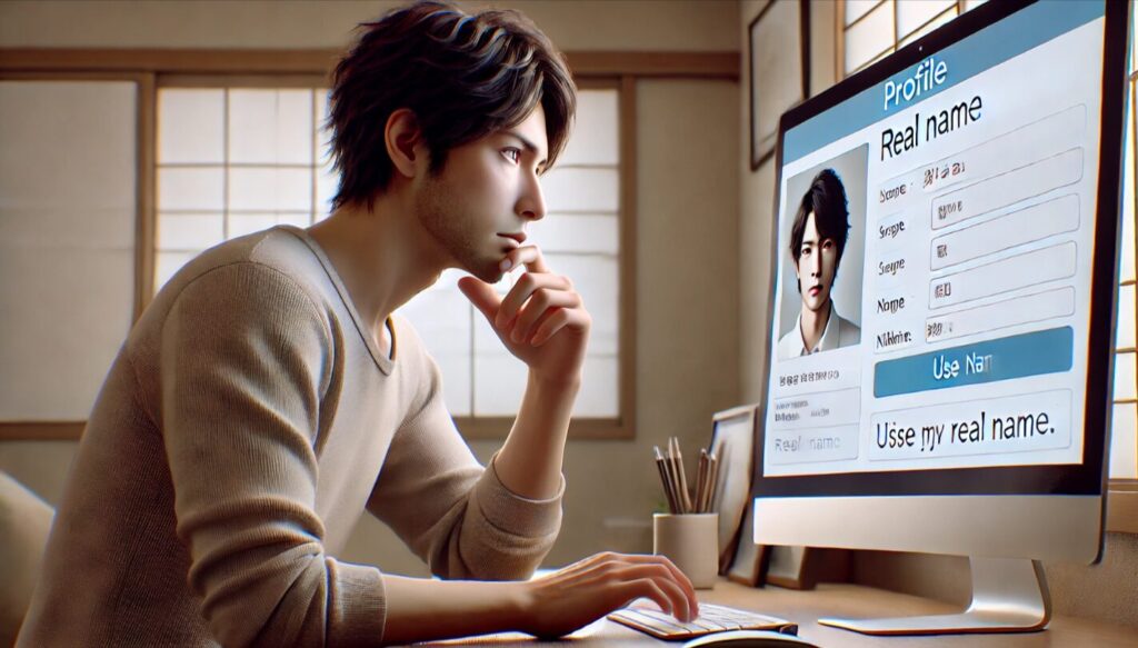 だからこそ、信頼感を演出したいという気持ちは理解できますが、安易にフルネームを使用するのではなく、例えば苗字のみを使ったり、名前の一部をアレンジするなどの工夫を加えることで、一定の安全性を確保しつつ親しみのある印象を与えることができます。